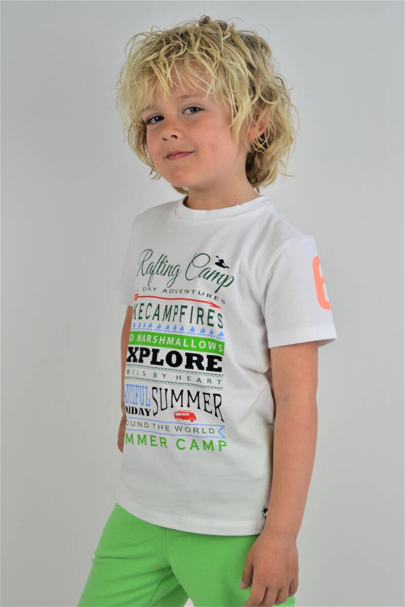 Noud heeft dit outfit direct uit de kast getrokken toen hij eindelijk een korte broek aan mocht van mama. Ik denk dat dat genoeg zegt! Hij houdt van de kleurrijke broek en zegt zelf dat de broek zo lekker zit! Het shirt sluit mooi aan en zit ook lekker. Noud heeft op de trampoline staan springen en zei dat hij alles kon doen haha.