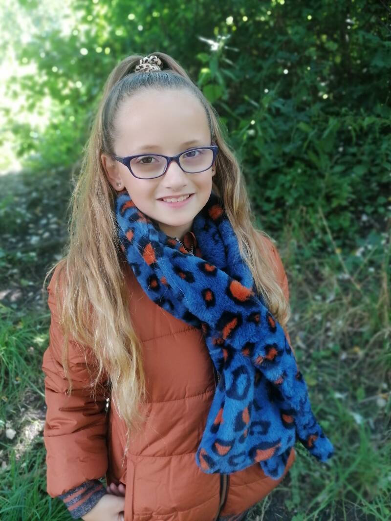 De jas van Noortje valt nu wel lang, maar zo heeft ze nog voldoende groeiruimte en kan ze er de hele winter mee door.